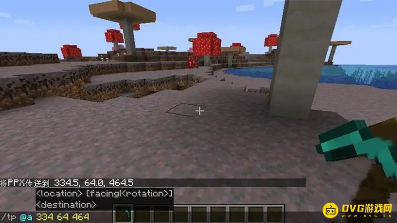2、然后输入指令【/tp @a 334 64 464】就能传送到这个地图的蘑菇岛上。