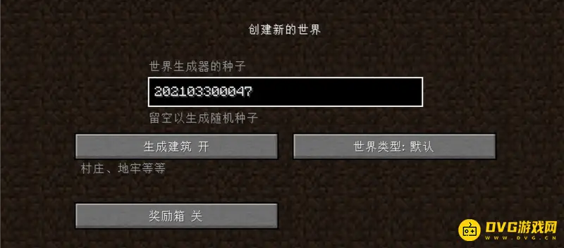1、游戏界面中点击“创建新的世界”点击更多世界高级选项,种子生成器中填入【202103300047】。