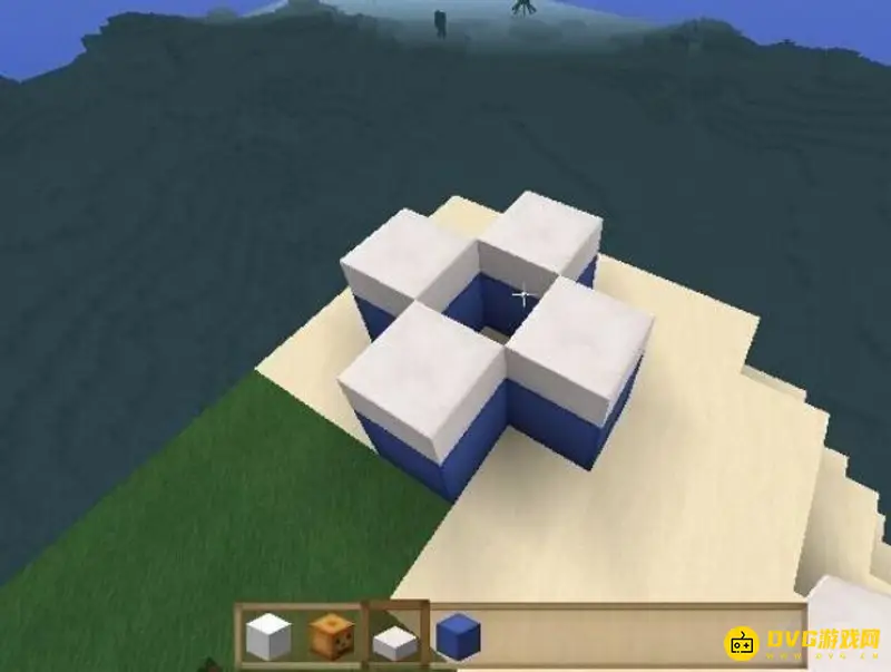 2. 然后,我们建一个如图的空心十字架,上面放上半砖。