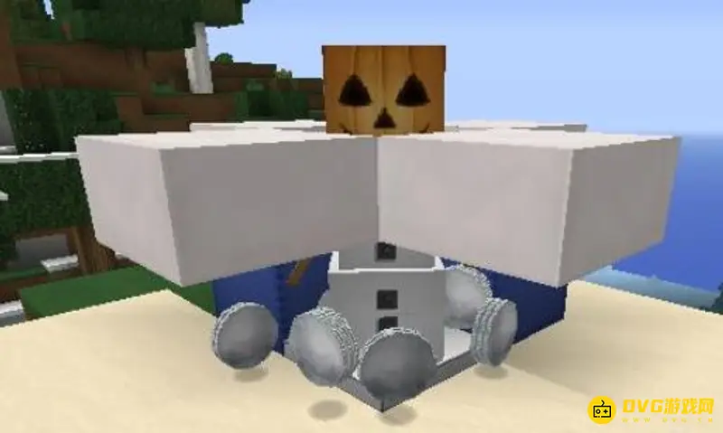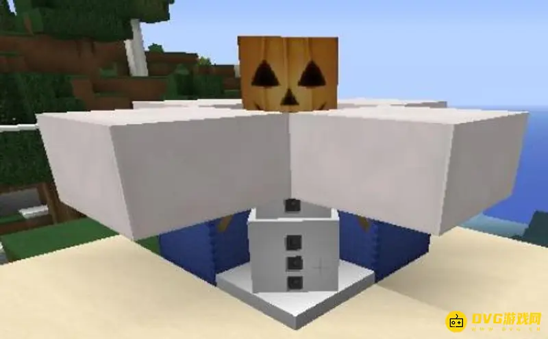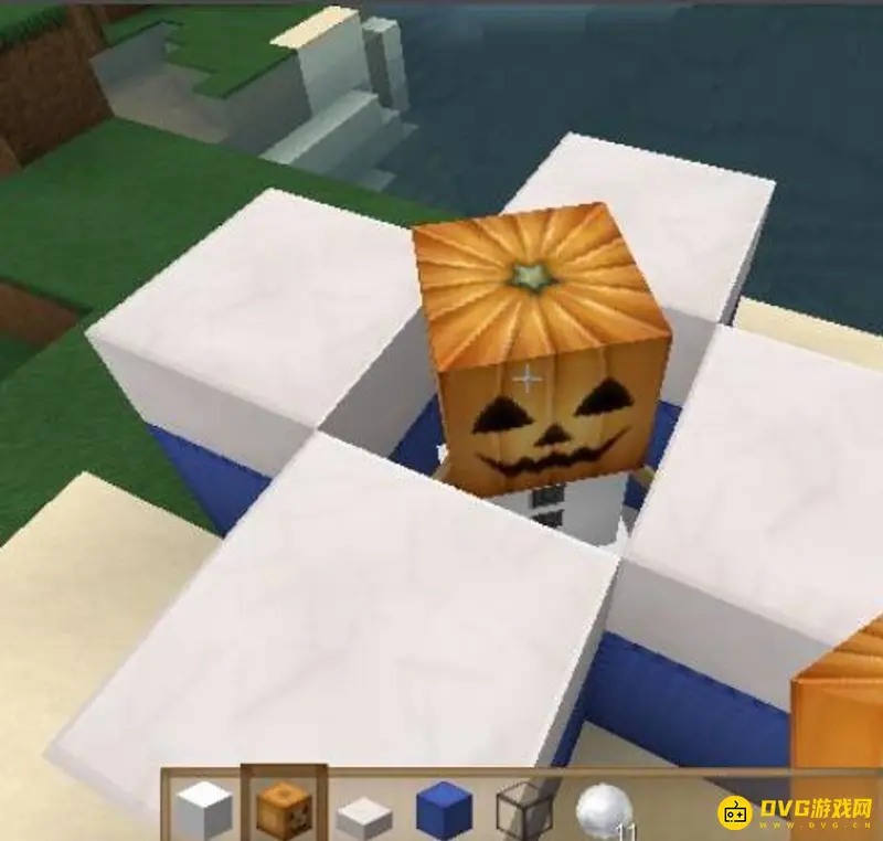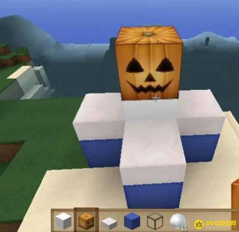 4. 在雪块上放上一个南瓜头,形成一个雪人。