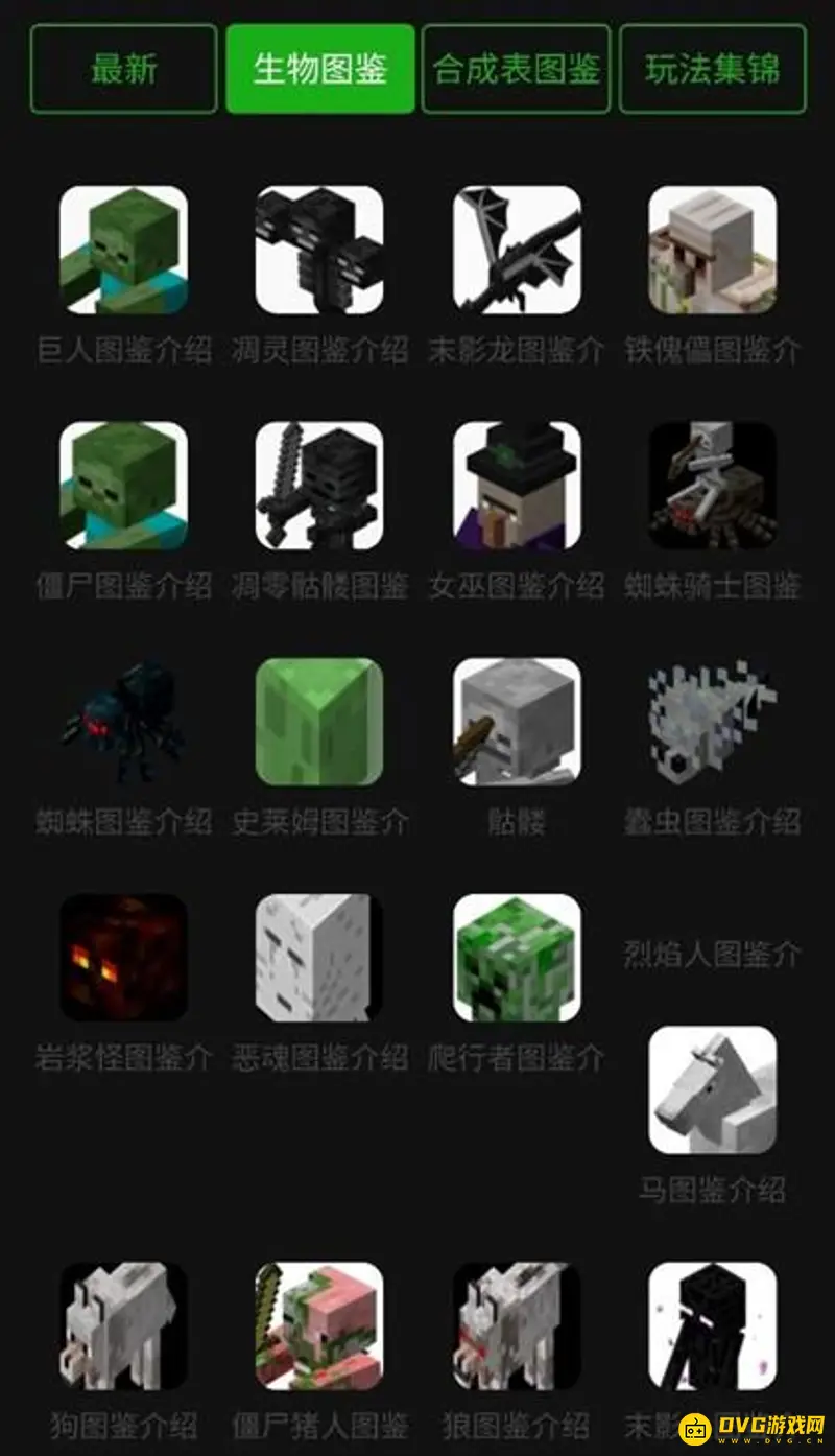 我的世界生物图鉴大全,包含了纯敌对生物、可驯化生物、友善生物,帮助大家更好的了解生物属性及获取途径等。我的世界官方书《生物图鉴》生物图鉴涵盖了我的世界里神秘的生物,在方块世界的设定里用险象环生的故事折射出生命哲理。官方小说MINECRAFT: THE CRASH 由Mojang官方授权,原版书由企鹅兰登书屋有限责任公司纽约分部于2018年在美国出版。