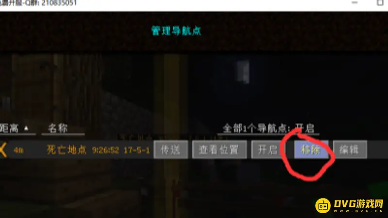 点击右侧最上面的小旗子,进入导航点控制页面。现在还是空的,我已经清理过一次。现在去创造一个死亡标记点(现实生活请勿模仿)。
