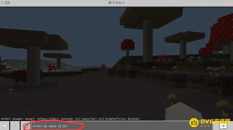 1,首先我们打开聊天框,输入指令/effect @p speed <时间> 255。