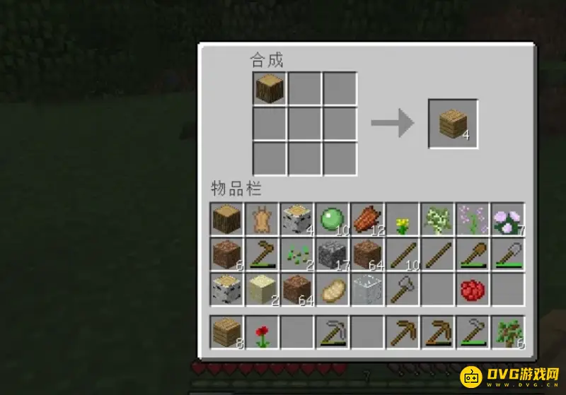 2、然后用木块合成木板,一个木块可以合成四个木板。