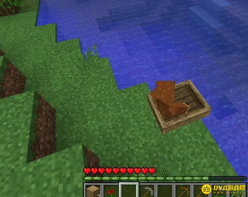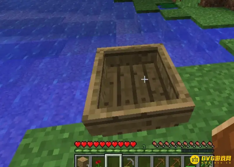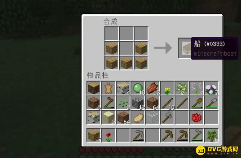 4、然后在工作台这里,右击工作台,用五块木板合成小船。