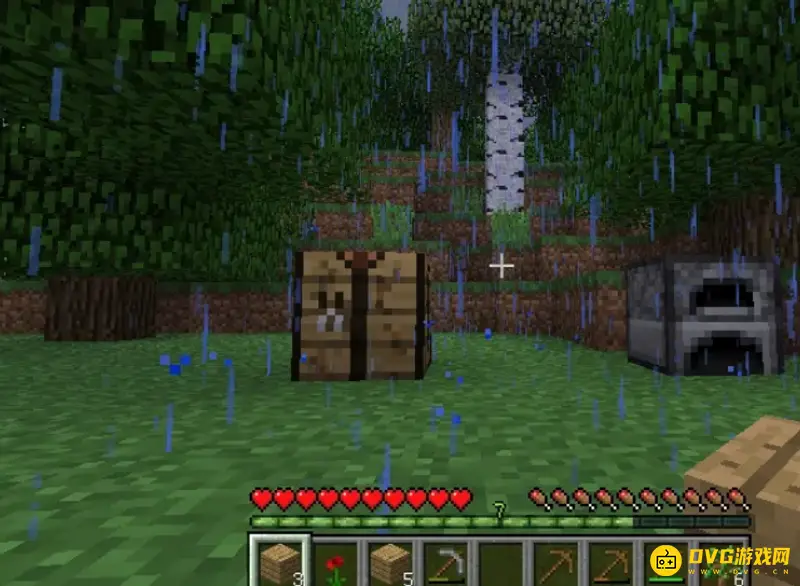 3、接着先用木板合成工作台,然后将合好的工作台放在地上。