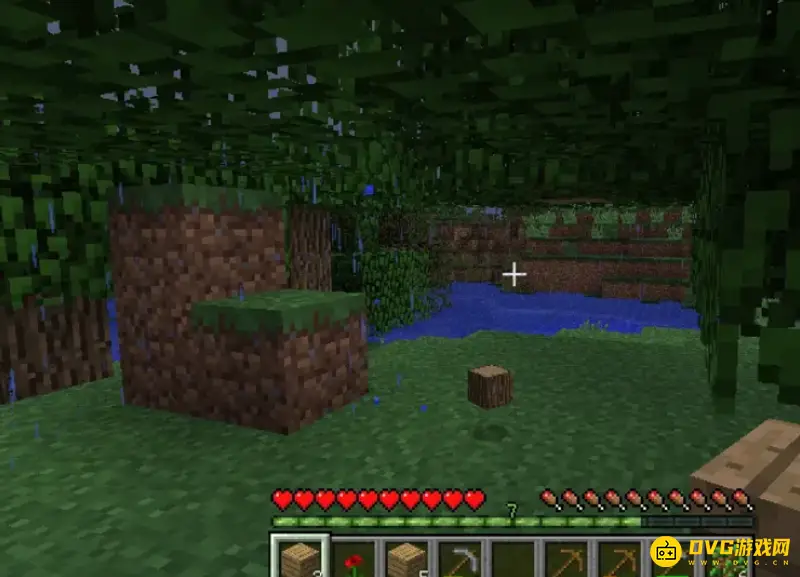 1、制作船我们需要用到木头,我们先去找到树木获得木块。