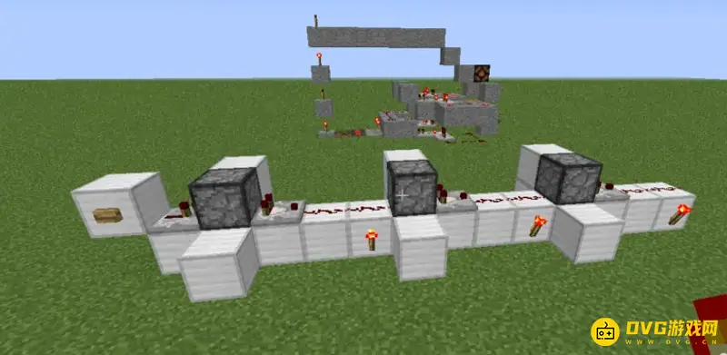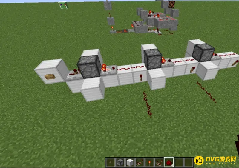 5、玩家要做几位的二进制计数器,就放几个发射器,下面是3位的计数器。