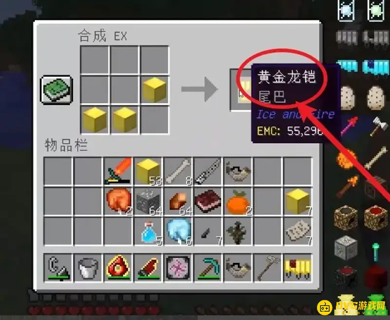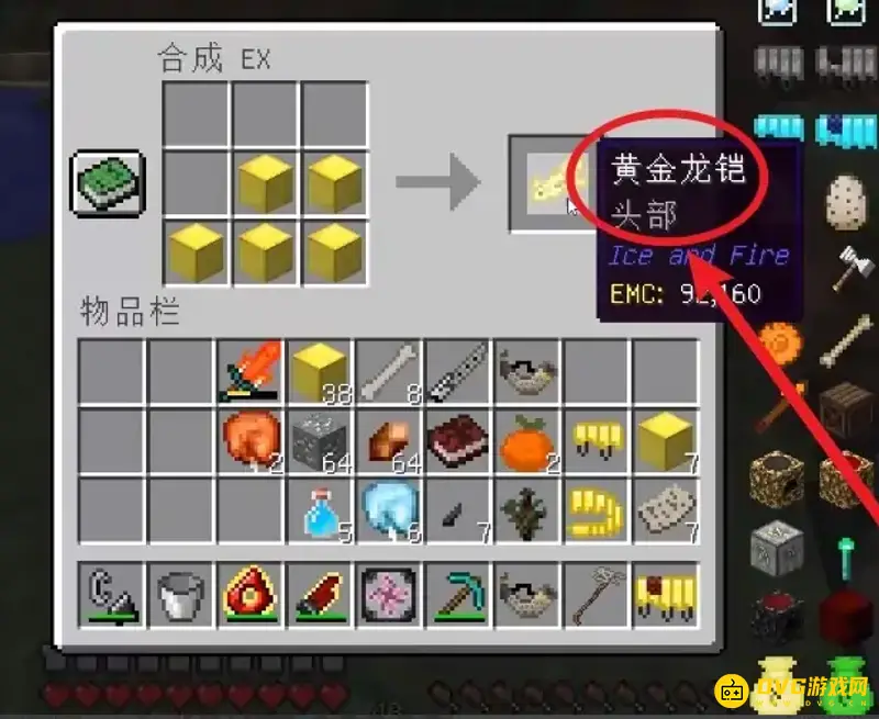3、同样的,继续用合成台,投入黄金,合成黄金龙铠-尾部。