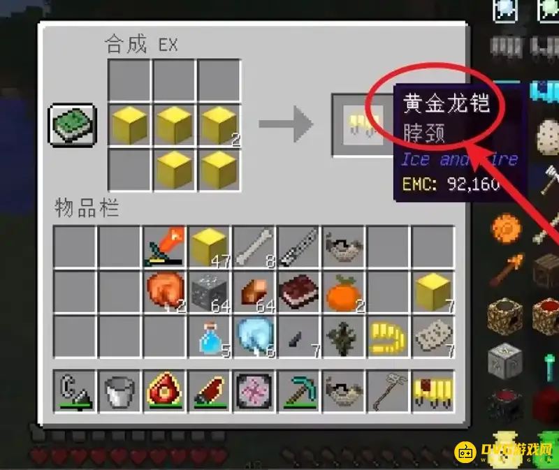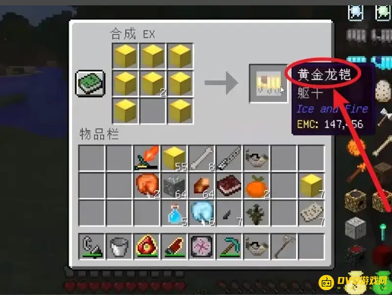 2、然后用合成台,投入黄金,合成黄金龙铠-躯干。