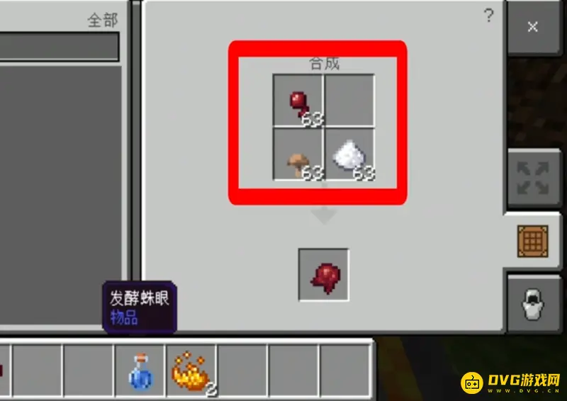 2、然后用蜘蛛眼、蘑姑和糖合成发酵蛛眼。