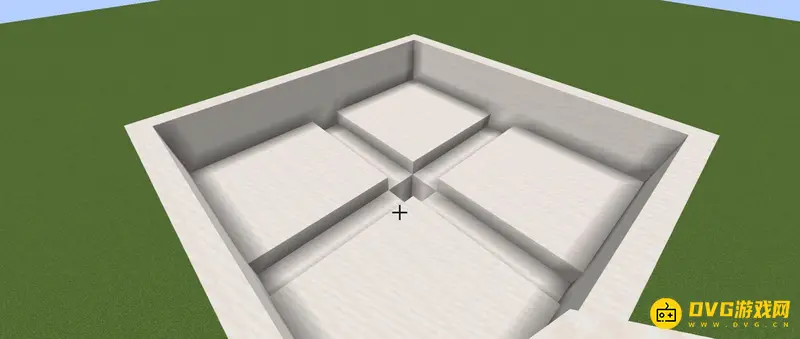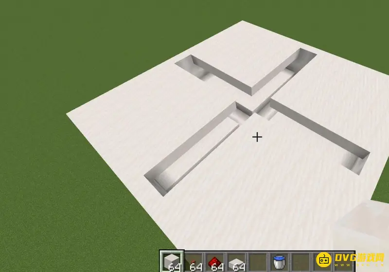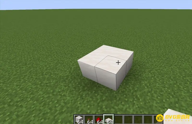 1、首先我们制作2x2的平台在地上,上面放上半砖