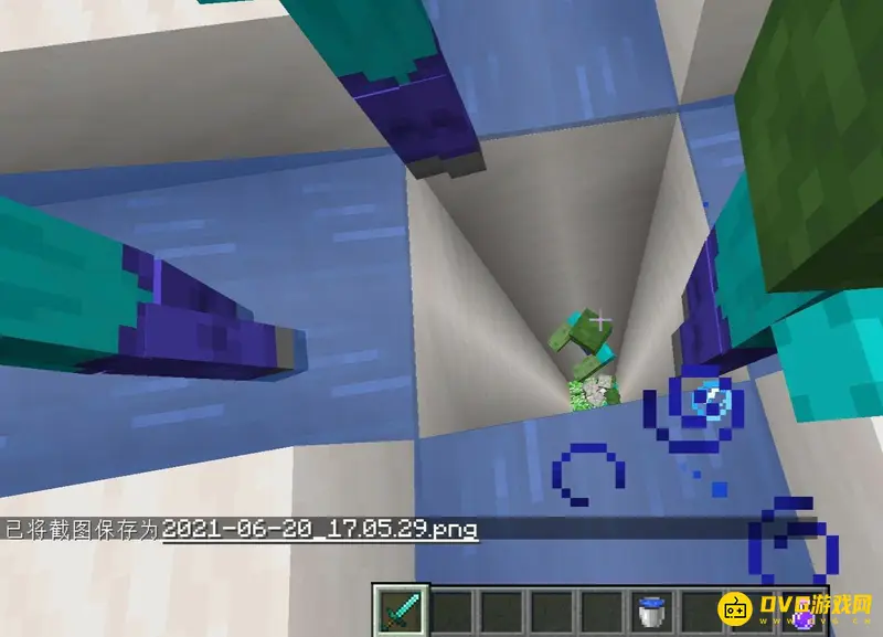 11、怪物正在向收集口掉落。这里注意,围栏一定要高,防止怪物跑出去。