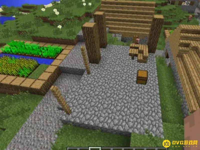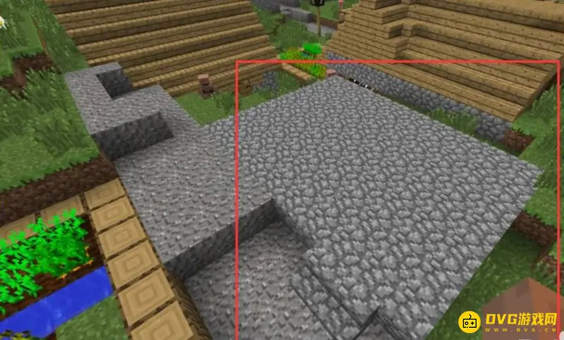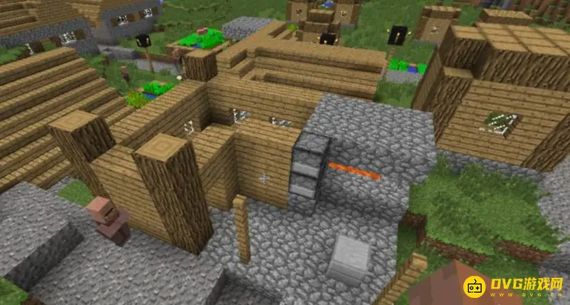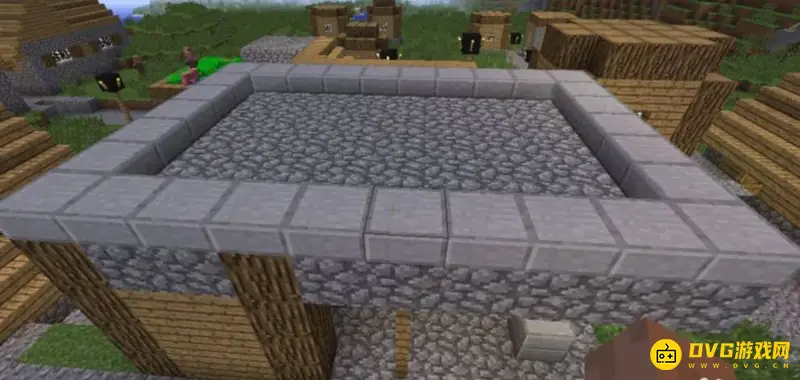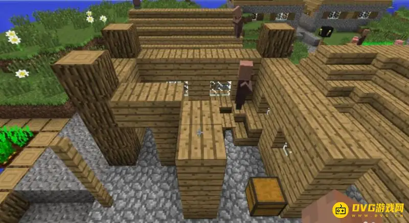 用圆石搭建房顶,围上一圈石头半台阶铁匠铺就完成了