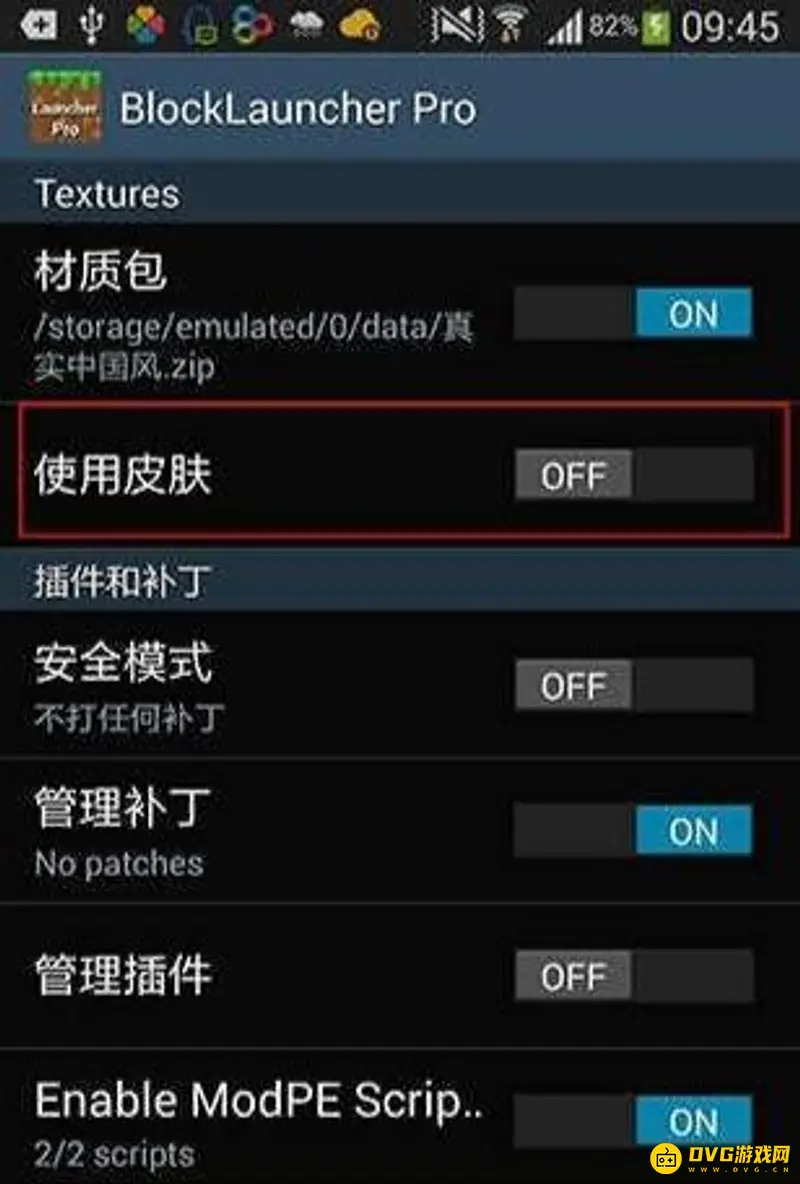 3、首先将使用皮肤设置为ON,然后选择自己的皮肤,饰品即可。