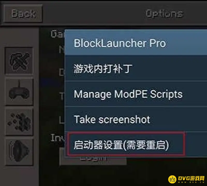 2、打开启动器。运行启动器,点击下方的扳手标志,在点击Options后点击启动器设置这个选项。
