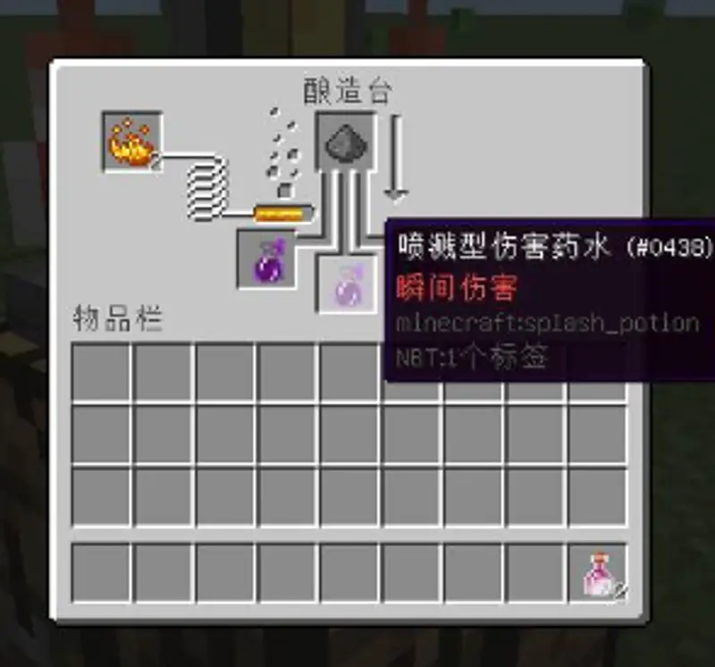 第五步:利用火药将瞬间伤害药水变为喷溅型瞬间伤害药水;