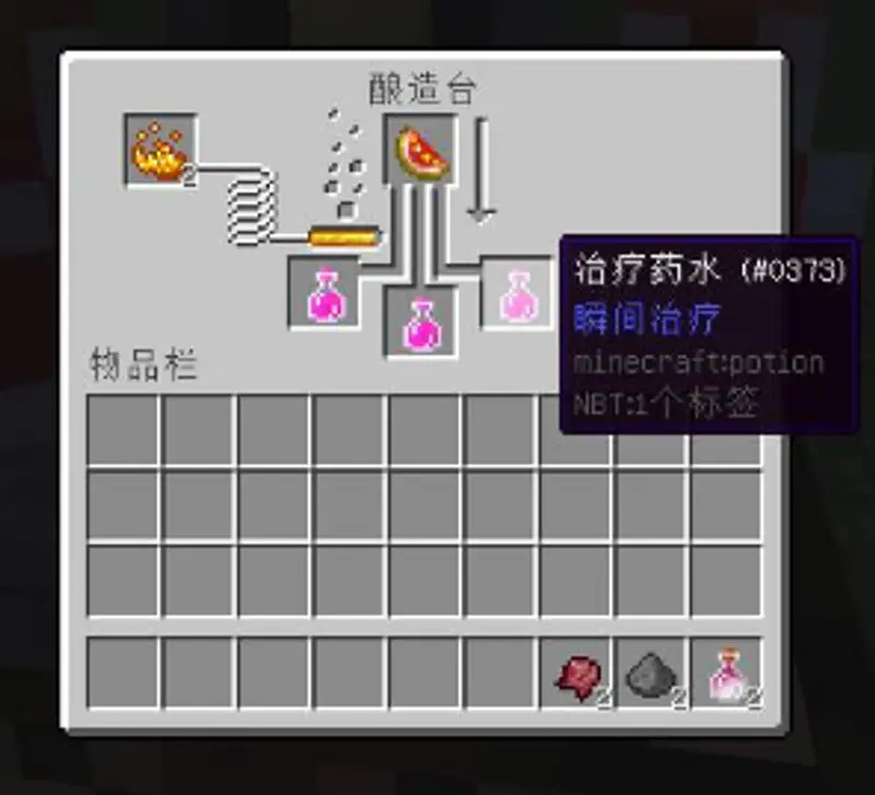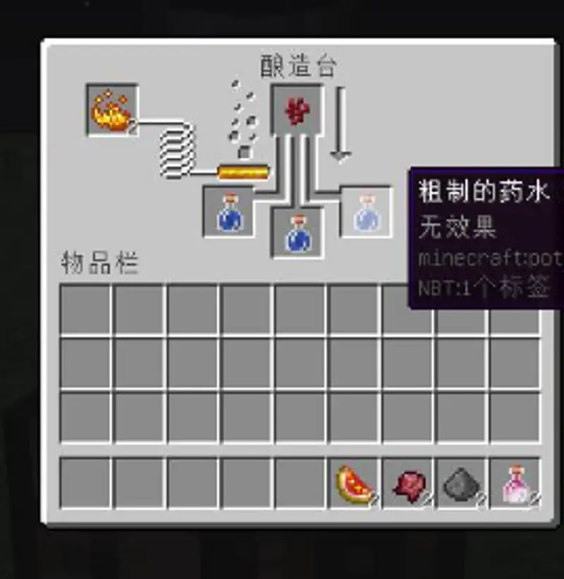 第四步:利用发酵蜘蛛眼将瞬间治疗药水变为瞬间伤害药水;