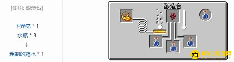 1,首先我们需要在酿造台上方放置下界疣,下面放置三瓶水瓶,制成粗制的药水。