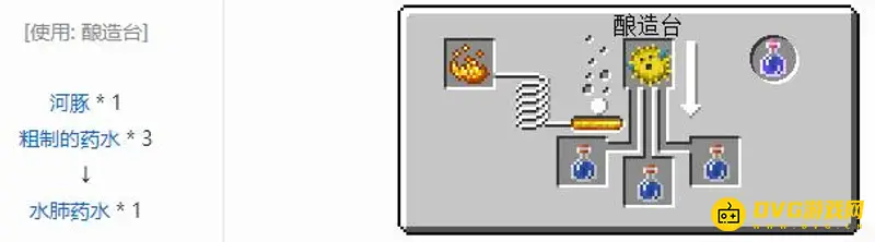 2,然后再把上方的下界疣换成河豚就可以酿造成水肺药水了。
