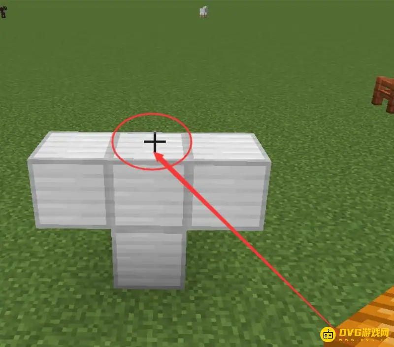 2、我们也可以通过用4个铁块 1个南瓜进行手动制造。制造方法为下面一个铁块,上面3个铁块,铁块上面中间位置放南瓜。