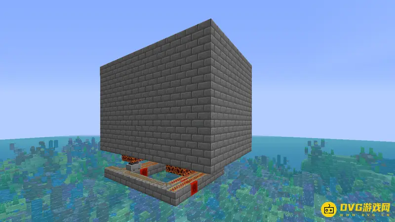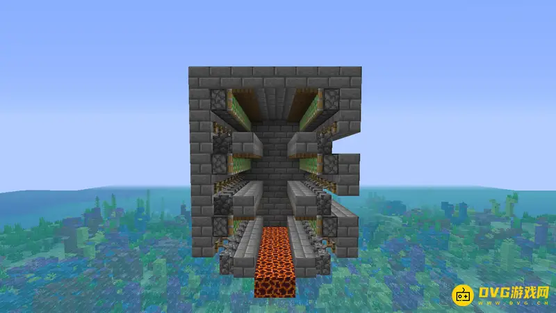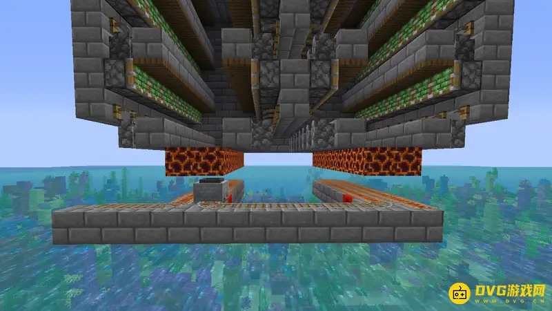 4、基于这个基本结构,扩展做苦力怕塔了。只在最下面一层放上两排岩浆块,这样就可以有效杀死苦力怕。