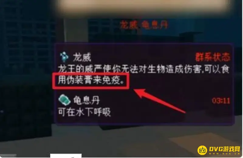 4、使用伪装膏免疫龙王的威严,进入龙宫范围后会受到龙威效果的影响,无法造成伤害,需要服用伪装膏解除效果