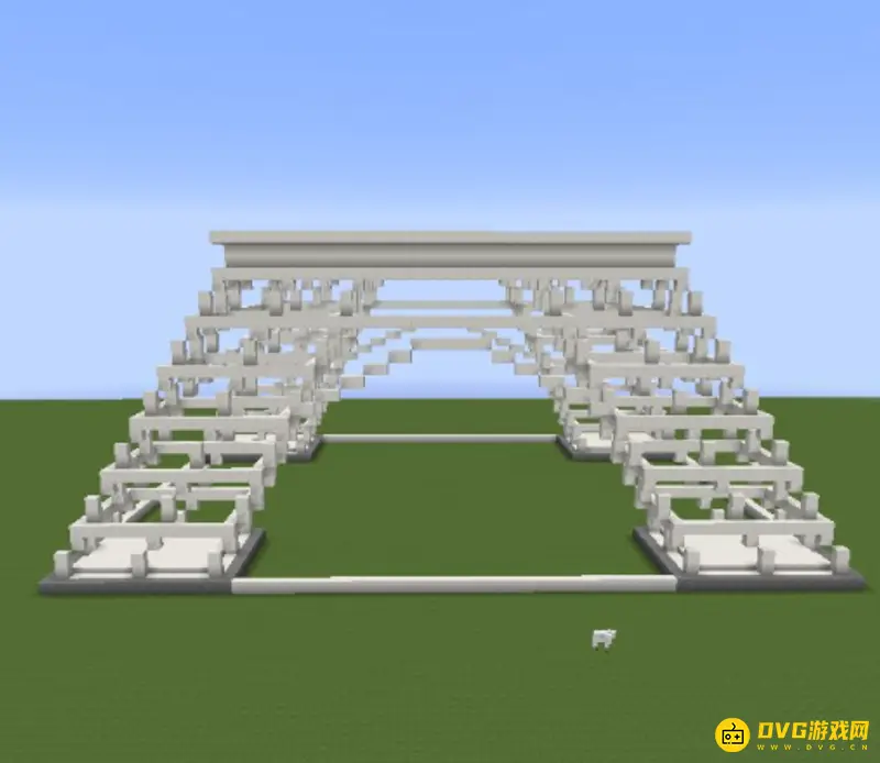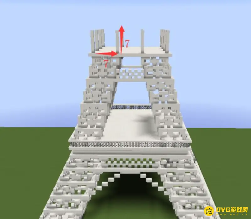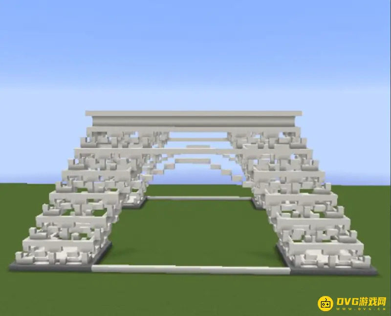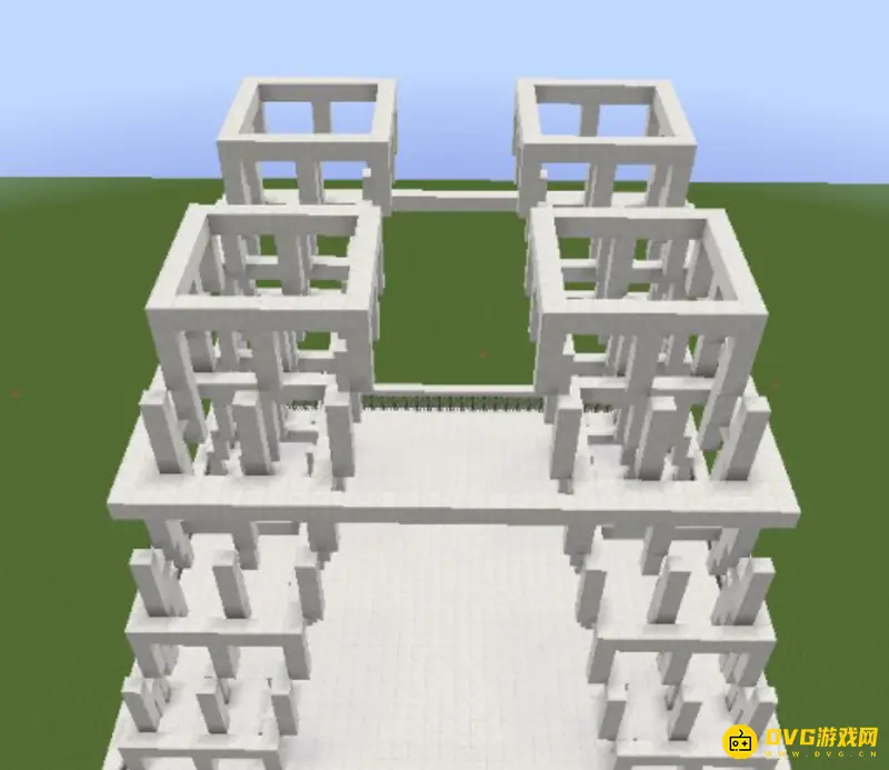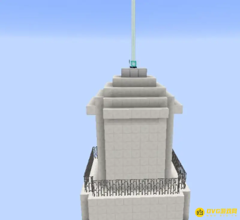 31、将第十层高的方块向外扩一格,然后按照第二层收一格,按照这个方式一直到顶层3X3的区域用铁块代替石英块,中间放一个信标。再将房子的中间一格掏空;