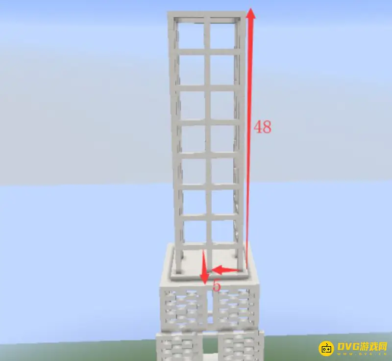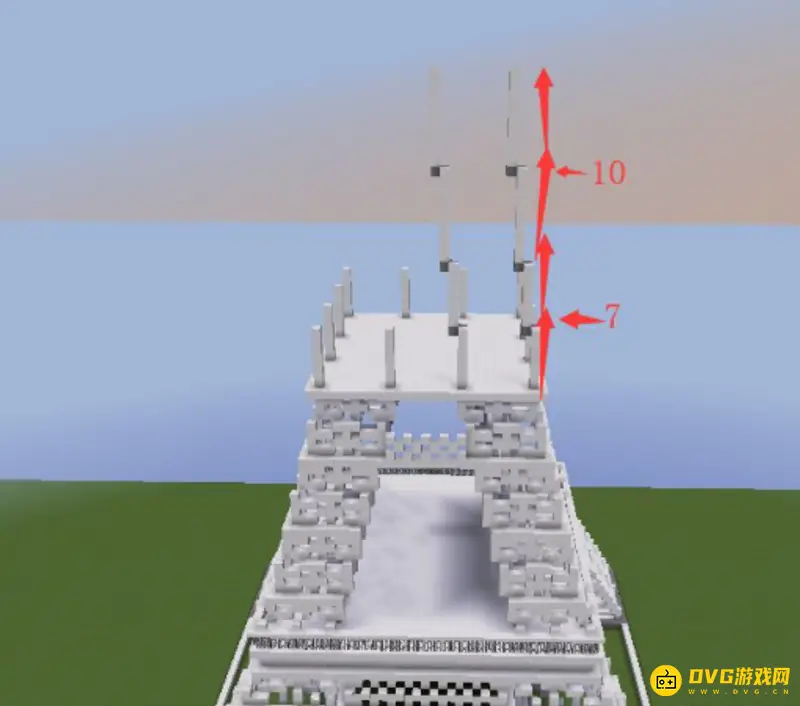 30、围上2格高的铁栅栏。然后收一格放置10格高的方块;