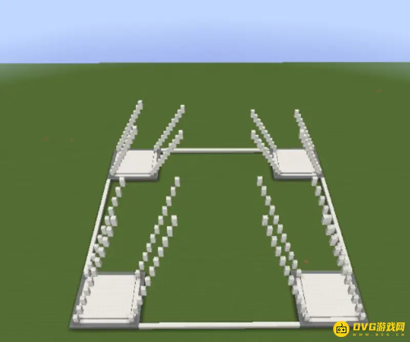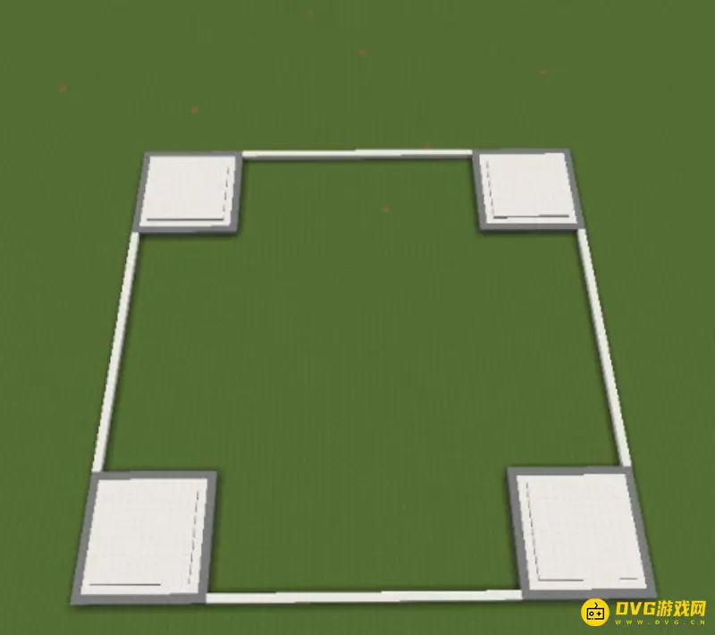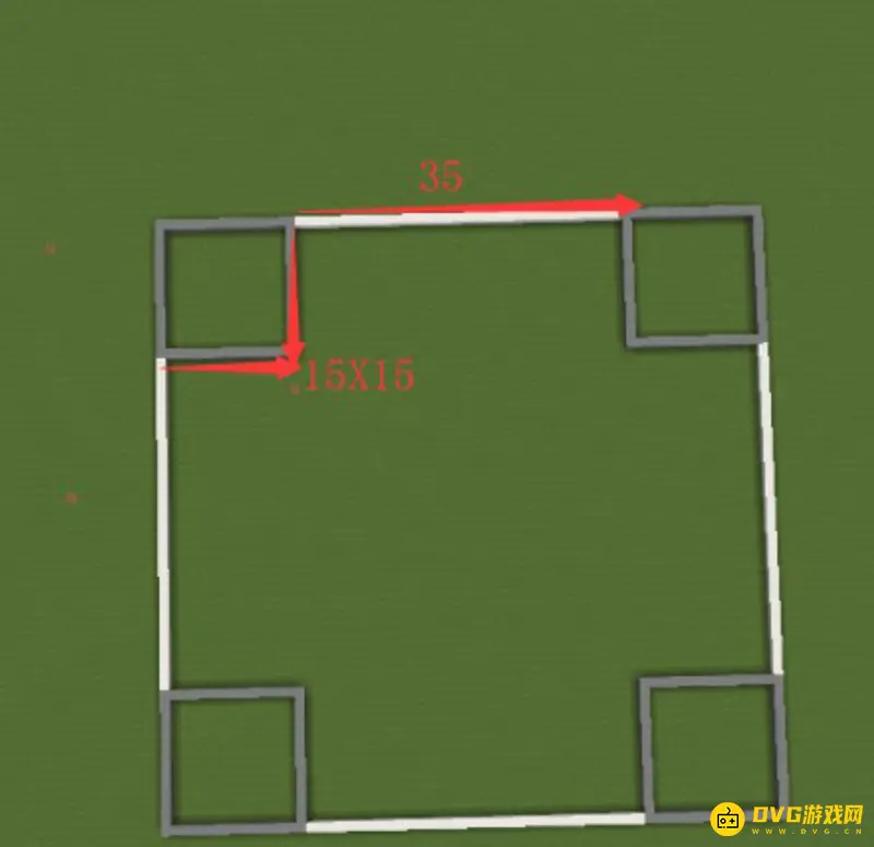 1、先建造一个正方形区域,四个角分别是15X15的方形区域,间隔35格;