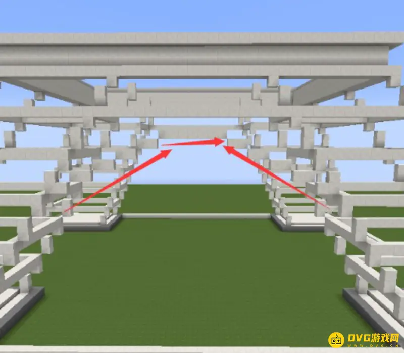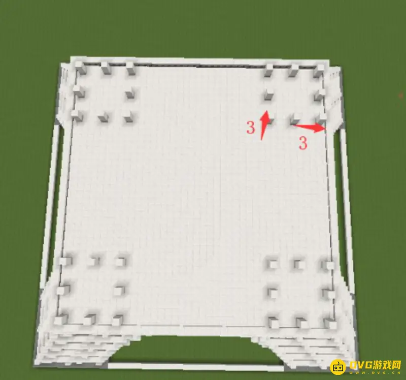 14、上方4个角分别开始每间隔3格放一个3格高的柱子;