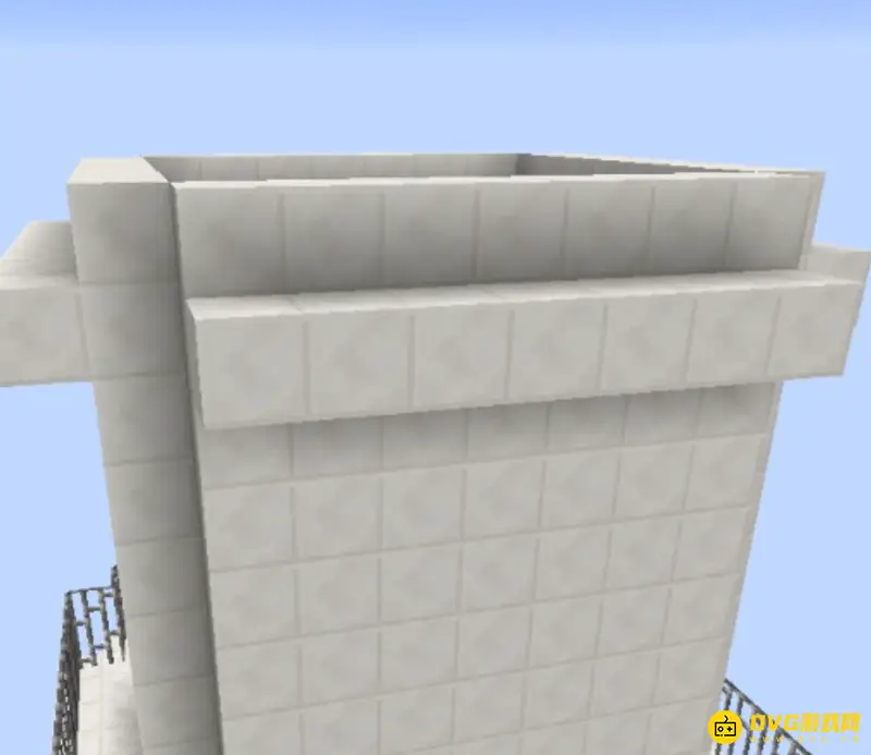 13、顶层用石英块铺满。然后放置两格高的铁栅栏围一圈,铁栅栏上面铺一圈石英半砖;