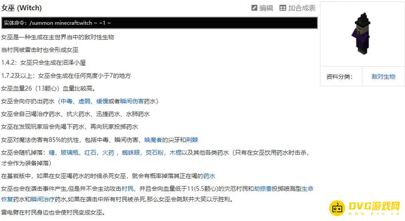 2,然后找到女巫的说明,就会发现是没有女巫驯服的相关说明,所以女巫不能被驯服。