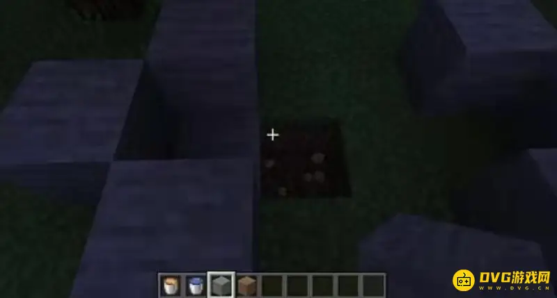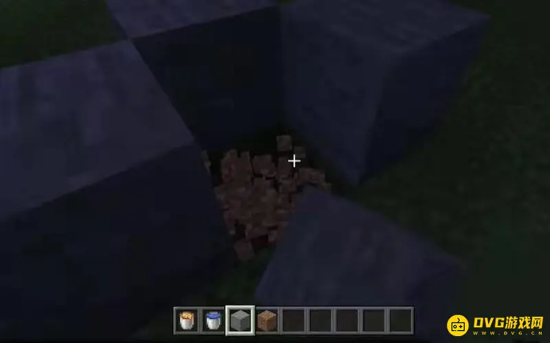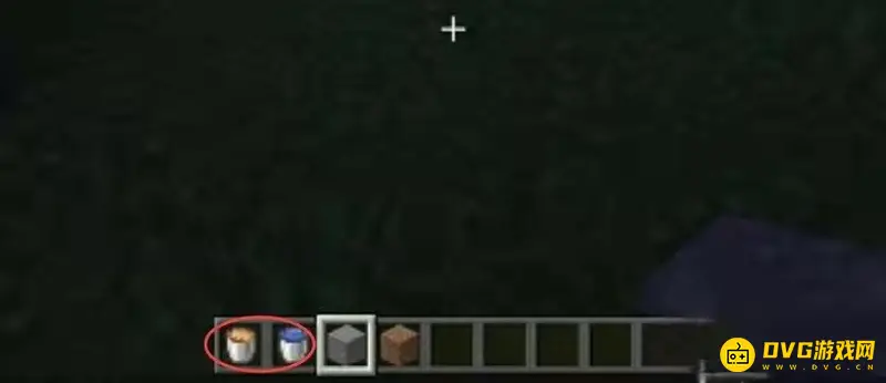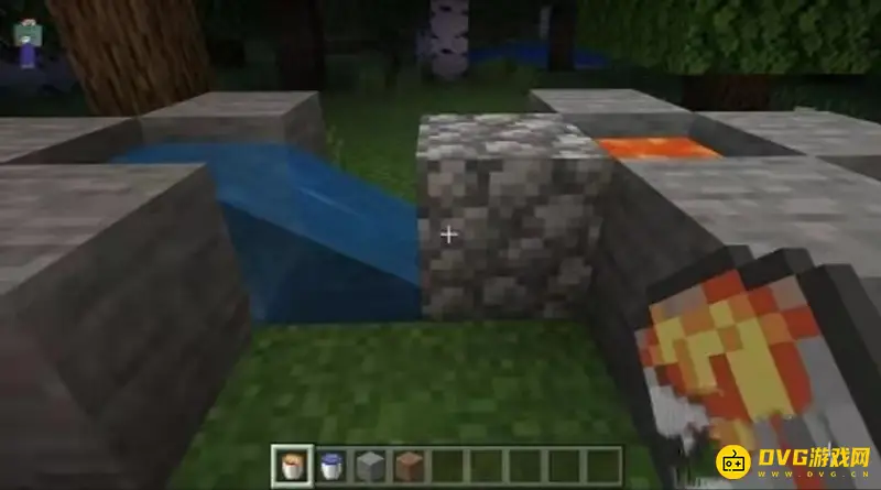 5.在挖掉方块的那一侧放置一桶水,在另一侧放置一桶岩浆。