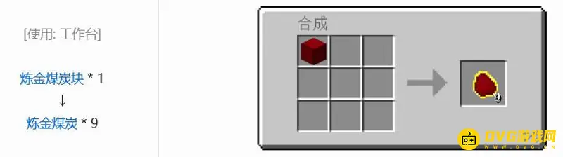 3.第3种方式是利用炼金煤炭块合成炼金煤炭,这样可以得到9个炼金煤炭。