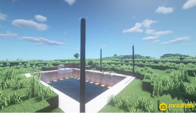 8、分别在泳池的三个角,使用深色橡木栅栏做出柱子。