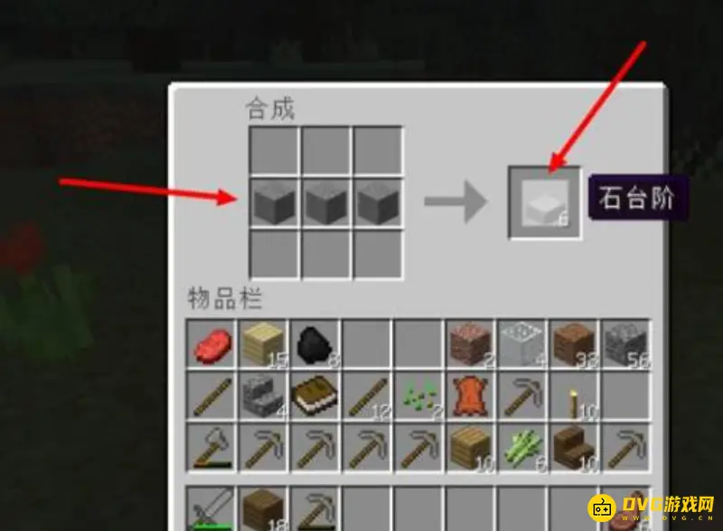 7.获得石块后,打开工作台,按图中把石块放上,获得石台阶。
