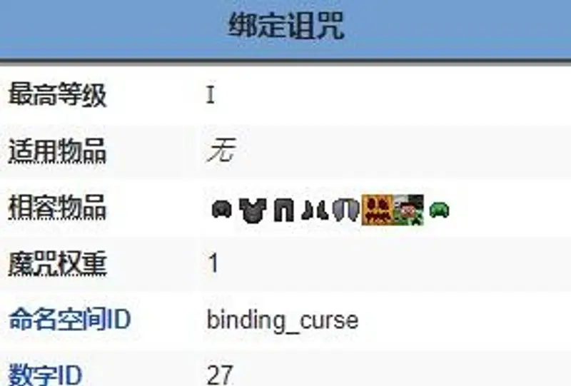 被绑定诅咒的物品无法从盔甲栏位中取下,除非玩家处于创造模式、玩家死亡或物品损坏或使用指令/clear @s <物品>或/replaceitem entity @s [槽位]来取下。
