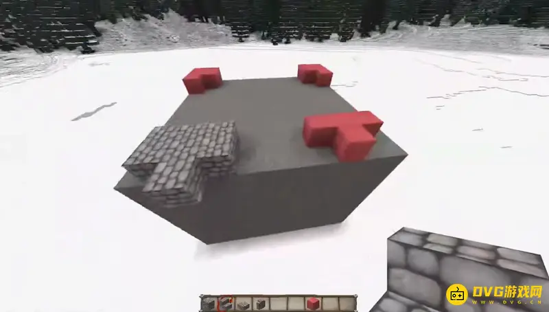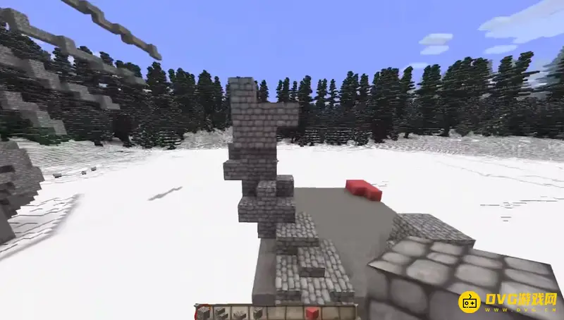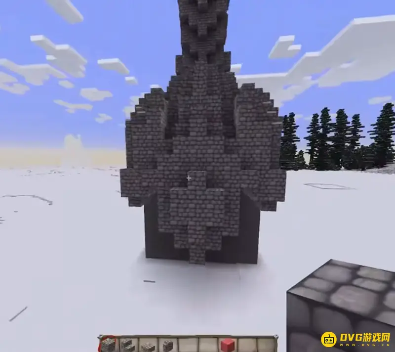 6、按照这个轨迹,我们开始螺旋状的摆放方块吧. 由于是石雕,所以我们所有的材料只需要用到 石头 ID 1