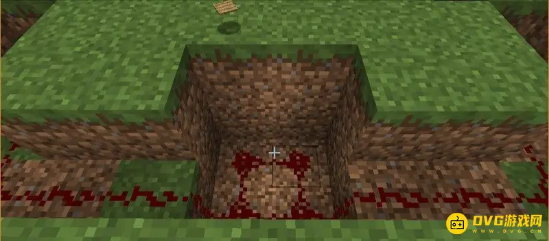 4、在玻璃门位置正前方的两格的距离,一定要挖两格的深度,为了在上方放置方块能够比较美观。然后放上红石。