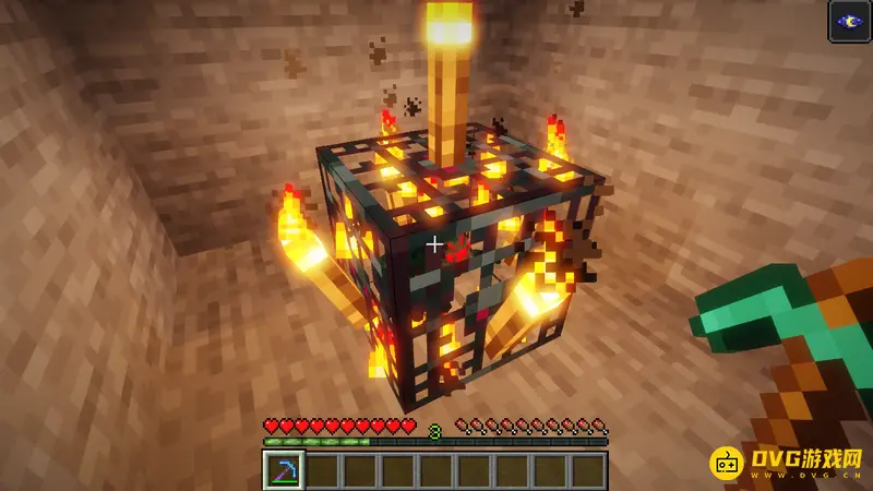 2、然后玩家对着刷怪笼按住鼠标左键开始挖掘。