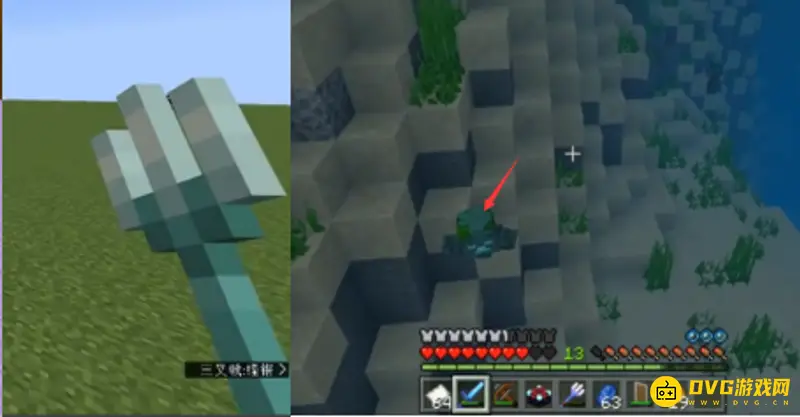 1、首先获得一把三叉戟,在打败海底僵尸后有概率掉落