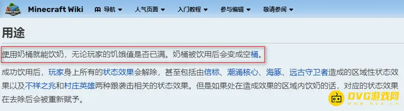使用奶桶就能饮奶,无论玩家的饥饿值是否已满。奶桶被饮用后会变成空桶。
