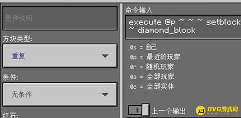 2、手机版输入:execute @p~ ~ ~ setblock ~ ~-1 ~ diamond_block;选择始终活动,将方块类型选为重复,条件设置为无条件,输入指令即可在脚下生成钻石。