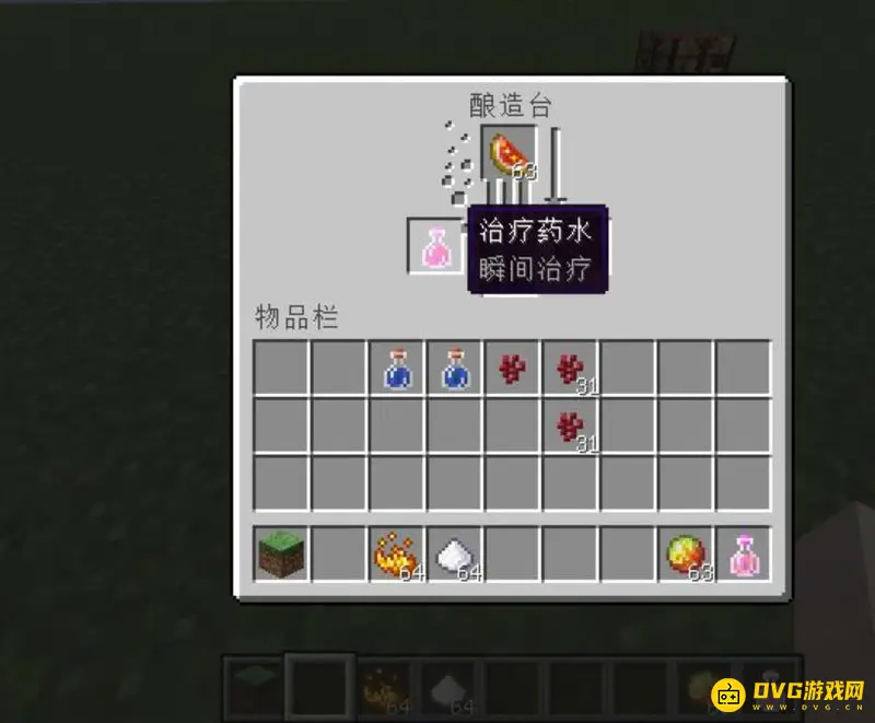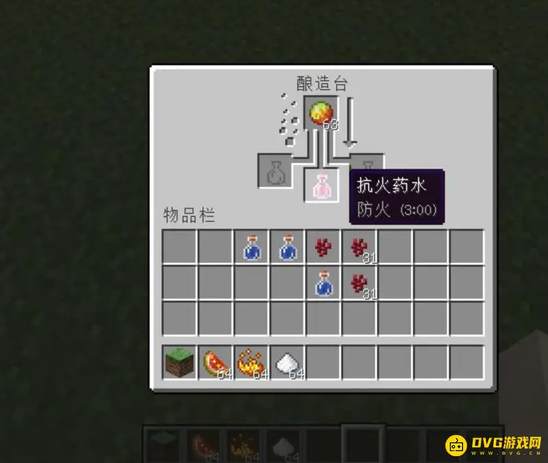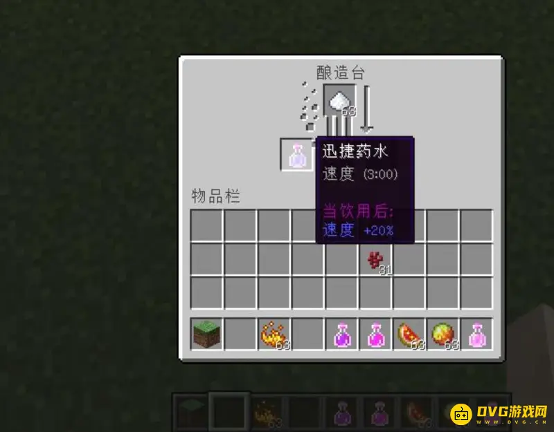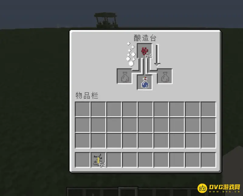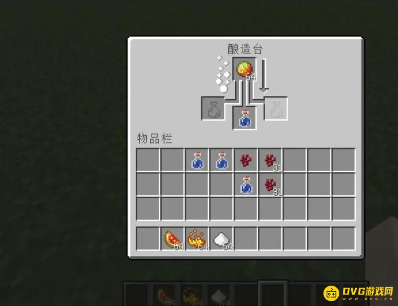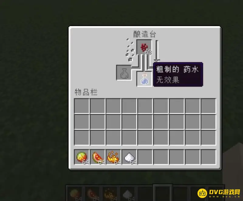 2,右键打开炼药台,将水瓶放置在底部,然后顶部放置下届疣,即可获得粗糙的水瓶。
