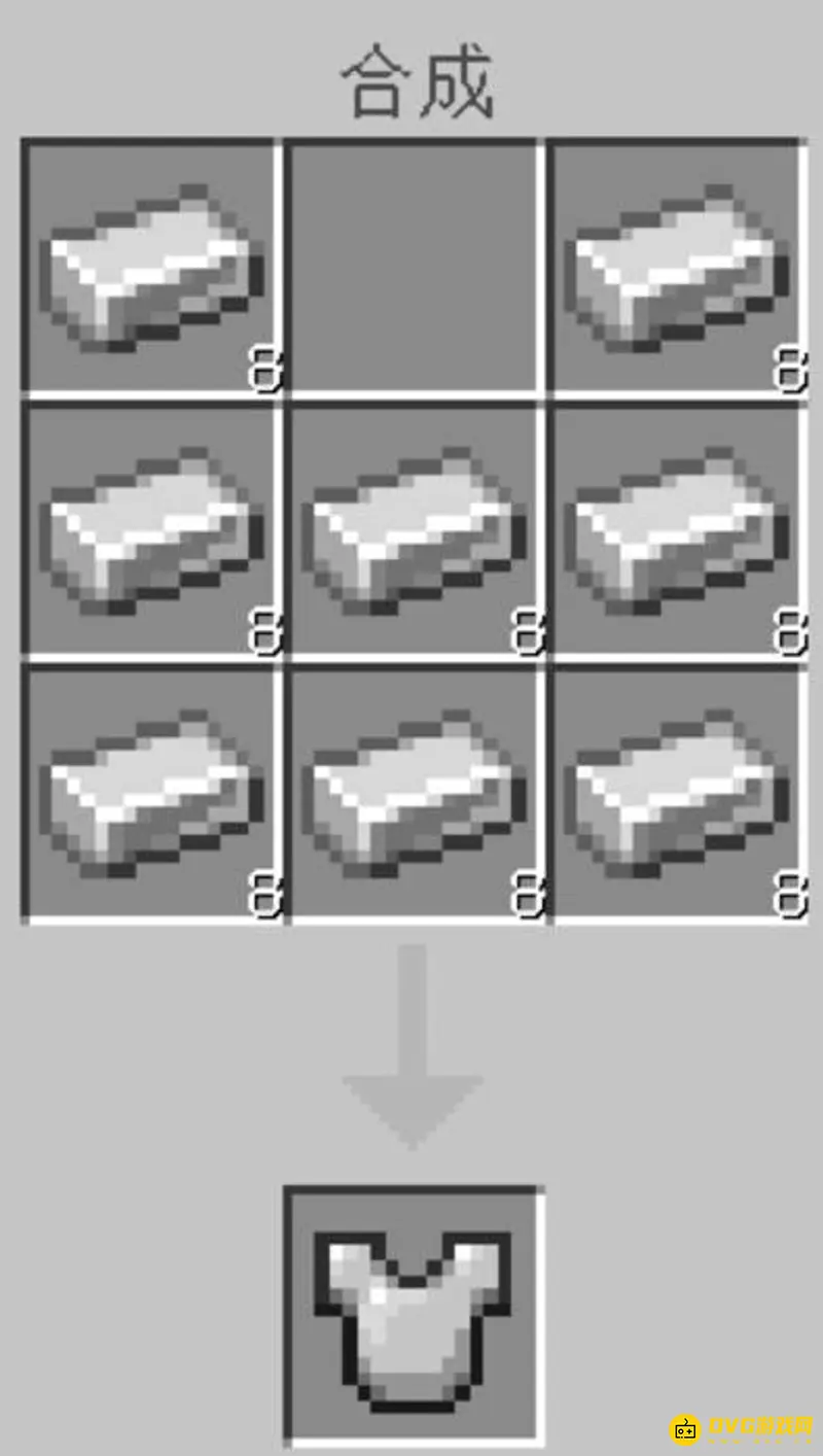3.胸甲。由8个铁(黄金、钻石等)组成。