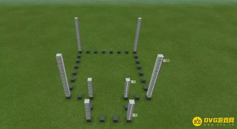 11、搭建4个通风口。最高顶由粗到细。至此城堡建造完成。
