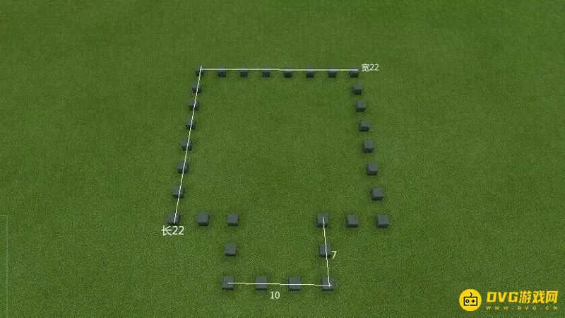 1、先把长宽盖出来,方块与方块之间的间隔为2格。