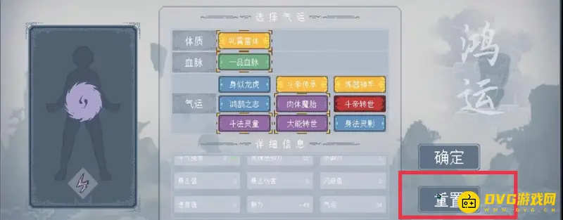 3.尽量选择好一点的体质和血脉,血脉最好选择一品及其以上的,如果第一次选的不满意可以点击重置按钮重新进行选择。