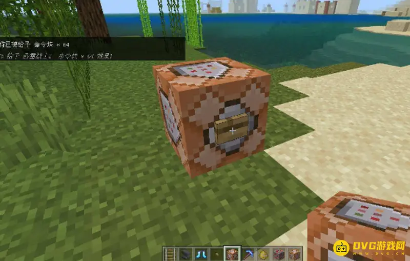 4,第二种方法是使用命令方块,我们使用指令/give @p minecraft:command_block 64获得命令方块,然后放置一个命令方块到地面上,接着我们打开命令方块输入指令。